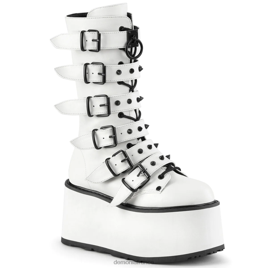 Botte mi-mollet à plateforme à lacets sur le devant avec 6 sangles à boucle conique et fermeture éclair en métal à l’intérieur