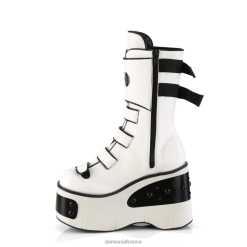 Botte mi-mollet à lanières et plateforme plaquée métal à l’avant et à l’arrière de 4 1/2 pouces (114 mm) avec protection avant avec plaque métallique de marque au centre, boucles à double pression et sangles auto-agrippantes sur les sangles restantes,