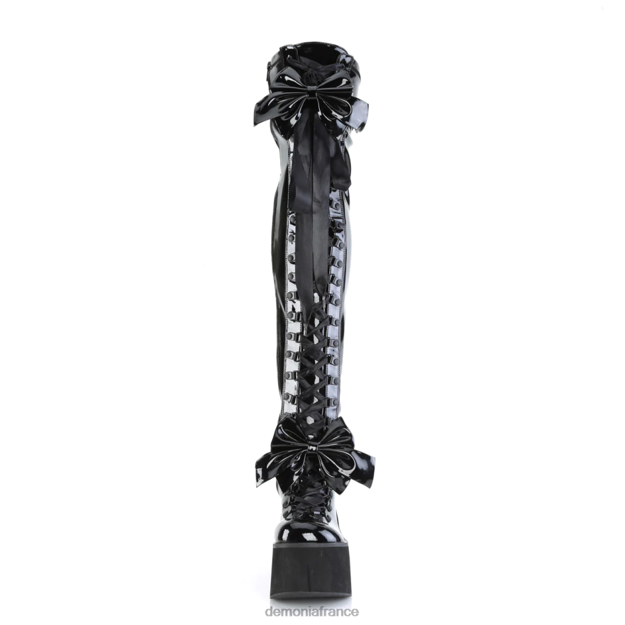 Cuissardes à lacets à plateforme compensée de 114 mm avec bretelles réglables et nœud surdimensionné amovible à la cheville et à la cuisse, fermeture éclair latérale intérieure sur toute la longueur,