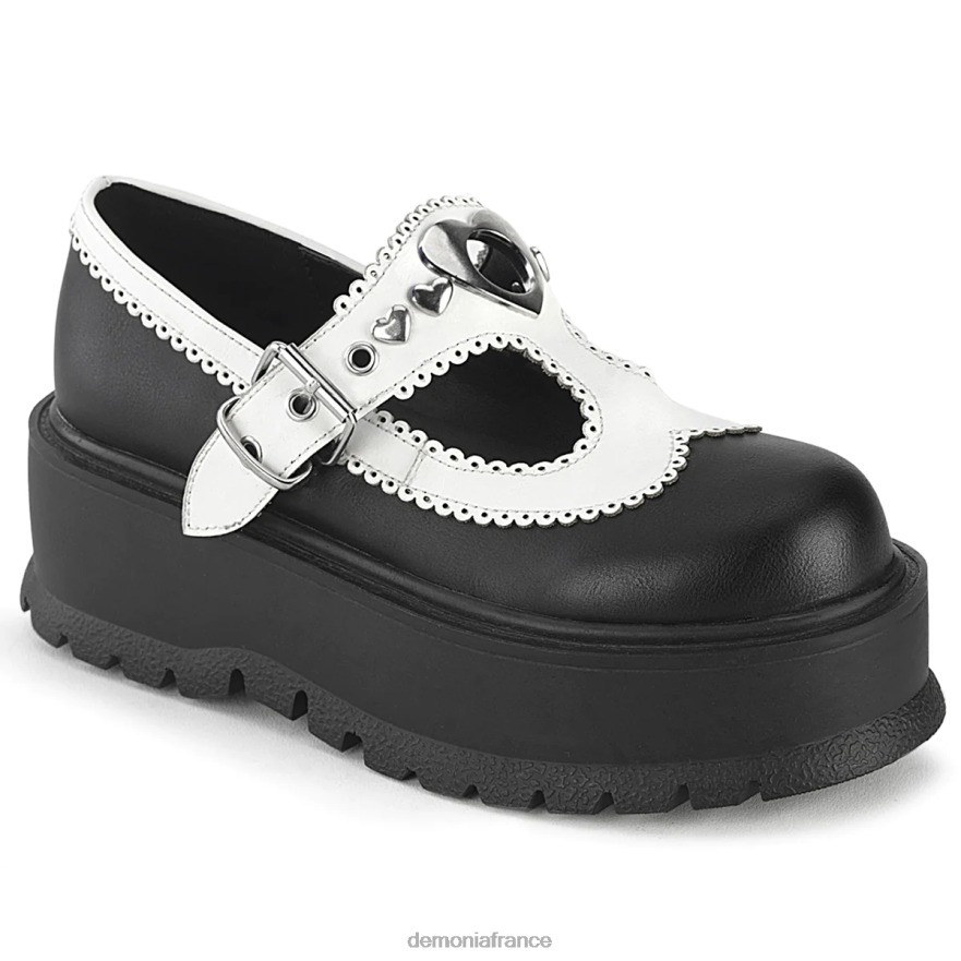 T0L2J1322 fainéant-23 cuir vegan noir-blanc Demonia