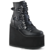 Bottines compensées à lacets sur le devant avec boucle en forme de tête de mort et sangle inférieure avec joint torique en forme de tête de mort, détails de pointes en caoutchouc et stoppeur de lacet, fermeture zippée en métal à l’intérieur