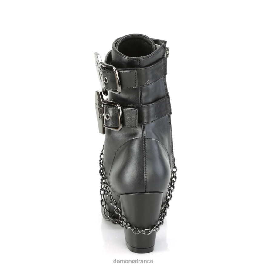 entrez dans le chic sombre du vivika-128. cette bottine en cuir végétalien noir est construite avec un talon bloc stable de 3 pouces et enveloppe votre pied confortablement grâce à son bout arrondi. Les anneaux en D à lacets offrent un ajustement personnalisable, tandis que les sangles à double boucle cercueil donnent une touche gothique. mais le véritable sujet de conversation est la cascade à double chaîne : un drapé spectaculaire à travers le canal du talon qui enveloppe le talon bloc pour un bord incomparable. osez être différent dans le vivika-128.