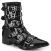 Bottines à talon bloc de 1 1/2 pouce (38 mm) et bout pointu de style Winklepicker avec sangles à double boucle à œillets, fermeture à glissière intérieure