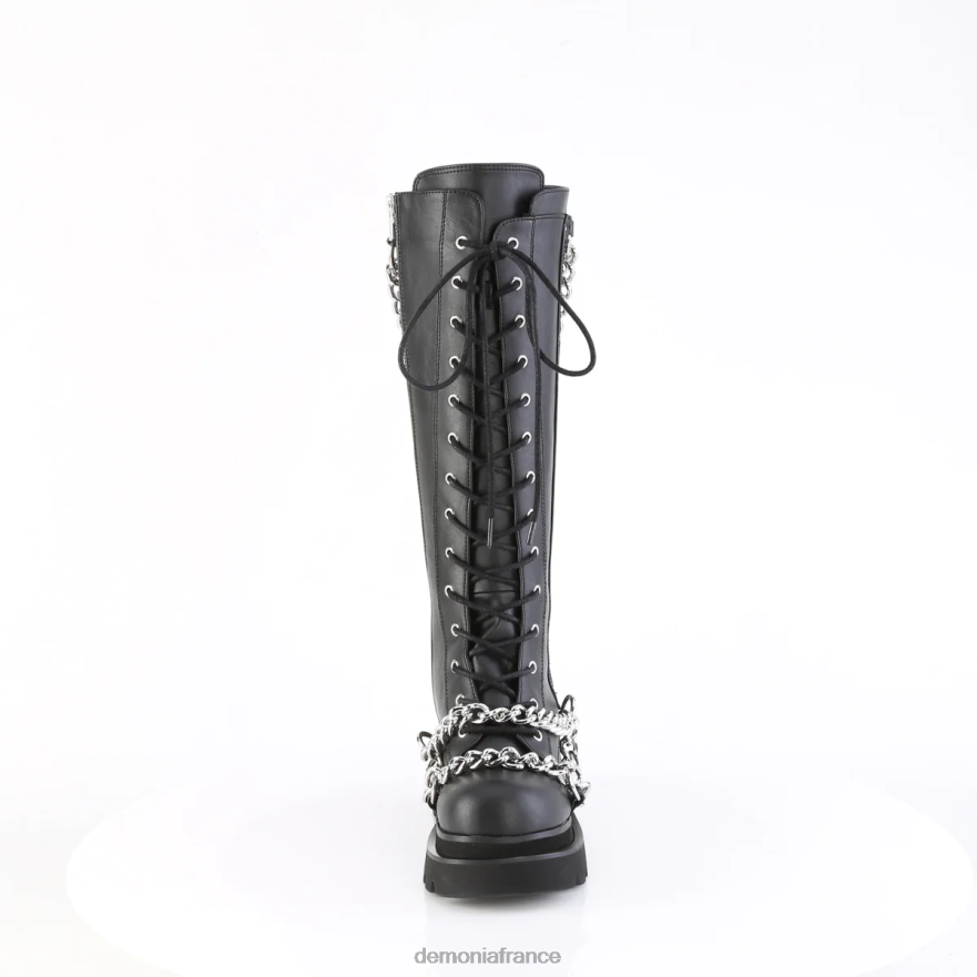 Bottes hauteur genou à lacets à plateforme à plusieurs niveaux de 2 1/2 pouces avec chaînes plongeantes à plusieurs niveaux et détails de joints toriques sur le dessus et l’empeigne, fermeture à glissière en métal à l’intérieur