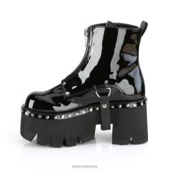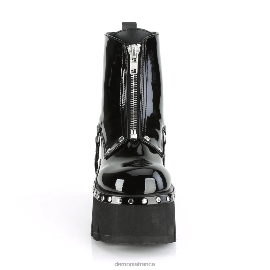 élevez votre style avec les cendres-100 bottine. Dotées d’un élégant talon épais de 3 1/2 pouces et d’une plateforme découpée, ces bottes sont conçues pour faire une déclaration. la fermeture éclair en métal sur le devant assure un ajustement sûr, tandis que les clous argentés sur la tige et les bordures autour du bas de la plateforme ajoutent une touche de rébellion. les anneaux en D avec sangle de harnais complètent le look, donnant à ces bottes un avantage supplémentaire. confectionné en cuir végétalien noir, le Ashes-100 offre à la fois style et durabilité dans un ensemble féroce.