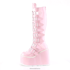 Botte haute à plateforme de 5 1/2 pouces (140 mm) avec 8 sangles à boucles avec plaques métalliques au centre, fermeture éclair en métal à l’arrière