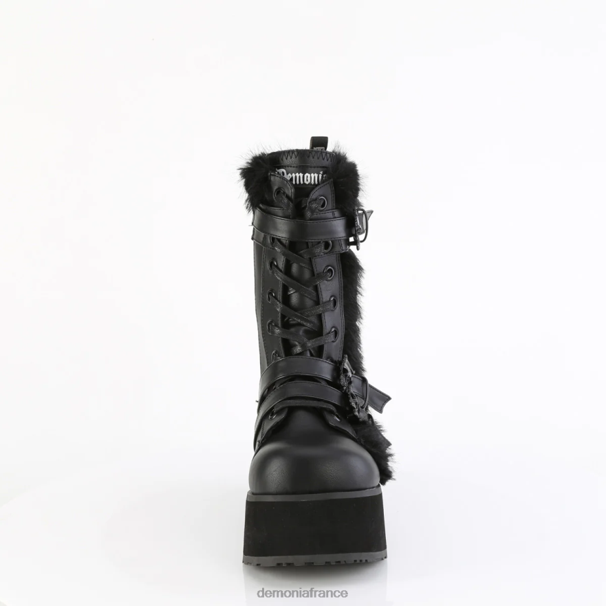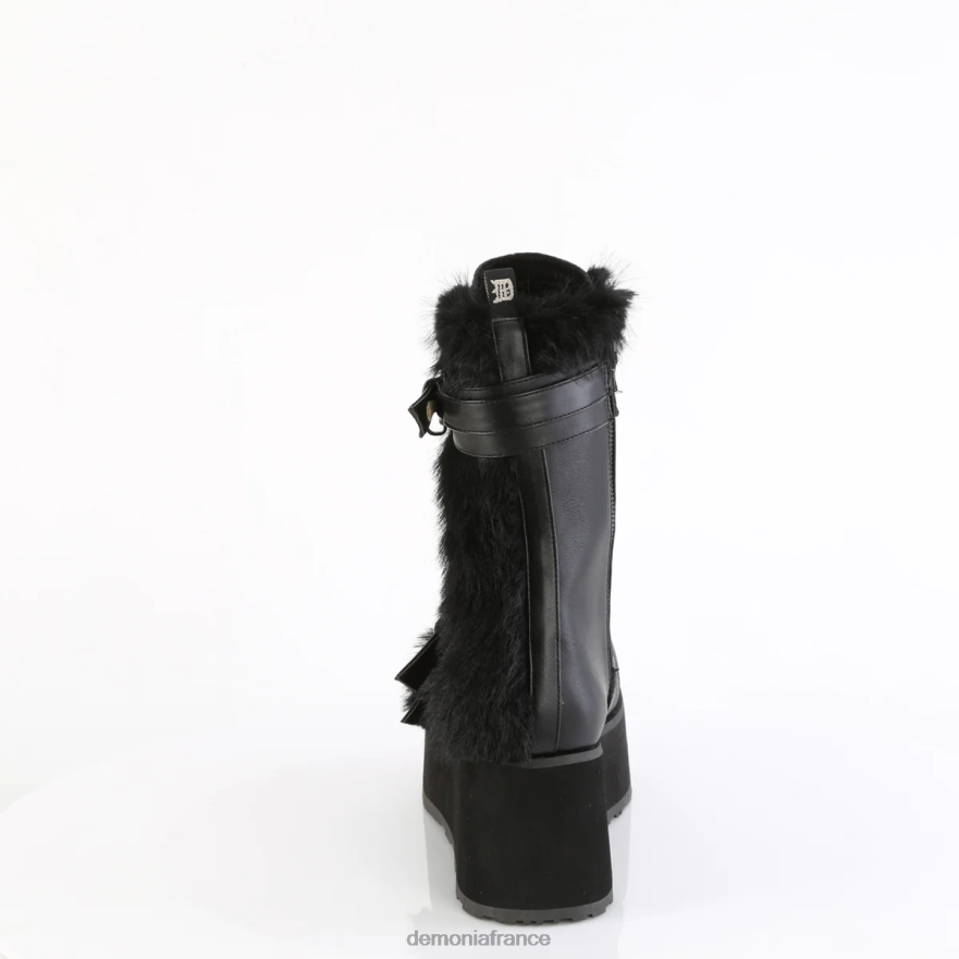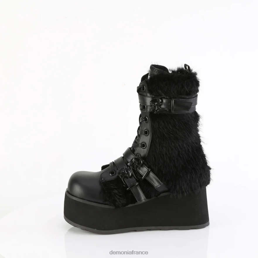 Botte mi-mollet à lacets à plateforme de 3 1/4 pouces (83 mm) avec 3 sangles à boucle tête de mort et panneau de fourrure extérieur contrasté, fermeture éclair latérale intérieure en métal