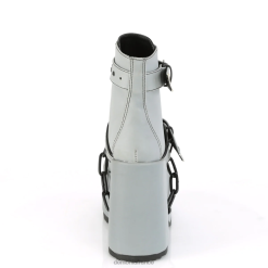 Talon épais de 5 pouces (127 mm), bottine à plateforme de 3 pouces (75 mm) avec fermeture à glissière en métal sur le devant, avec doubles brides à œillets, anneau en D et cadenas avec chaîne en métal épaisse drapée sur la plateforme et le canal du talon