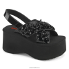 Sandale à plateforme de 89 mm (3 1/2 pouces) avec empeigne à fermeture auto-agrippante réglable, bride arrière cloutée argentée à bouton-pression amovible et patch tête de mort et os croisés brodés sur l’empeigne