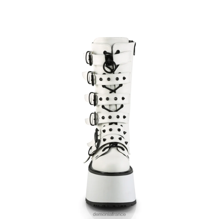 Botte mi-mollet à plateforme à lacets sur le devant avec 6 sangles à boucle conique et fermeture éclair en métal à l’intérieur