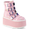 Bottines à plateforme de 90 mm (3 1/2 pouces) avec sangles à boucle quadruple avec plaques métalliques au centre, fermeture éclair en métal à l’arrière