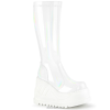 Bottines à plateforme compensée de 140 mm (5 1/2 pouces) avec sangles à triple boucle avec plaques en métal chromé argenté au centre, fermeture éclair en métal à l’arrière