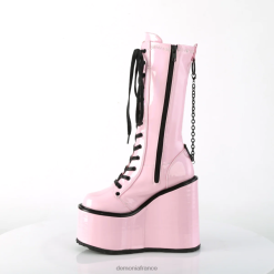 Bottes hautes extensibles à lacets sur plateforme compensée de 140 mm avec chaîne en métal amovible, fermeture à glissière en métal à l’intérieur