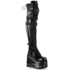 Bottes hautes extensibles à lacets sur plateforme compensée de 140 mm avec chaîne en métal amovible, fermeture à glissière en métal à l’intérieur