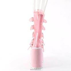 Botte mi-mollet à plateforme de 5 1/2 pouces (140 mm) avec 5 sangles à boucle avec plaques métalliques en forme de cœur au centre, fermeture éclair en métal à l’arrière