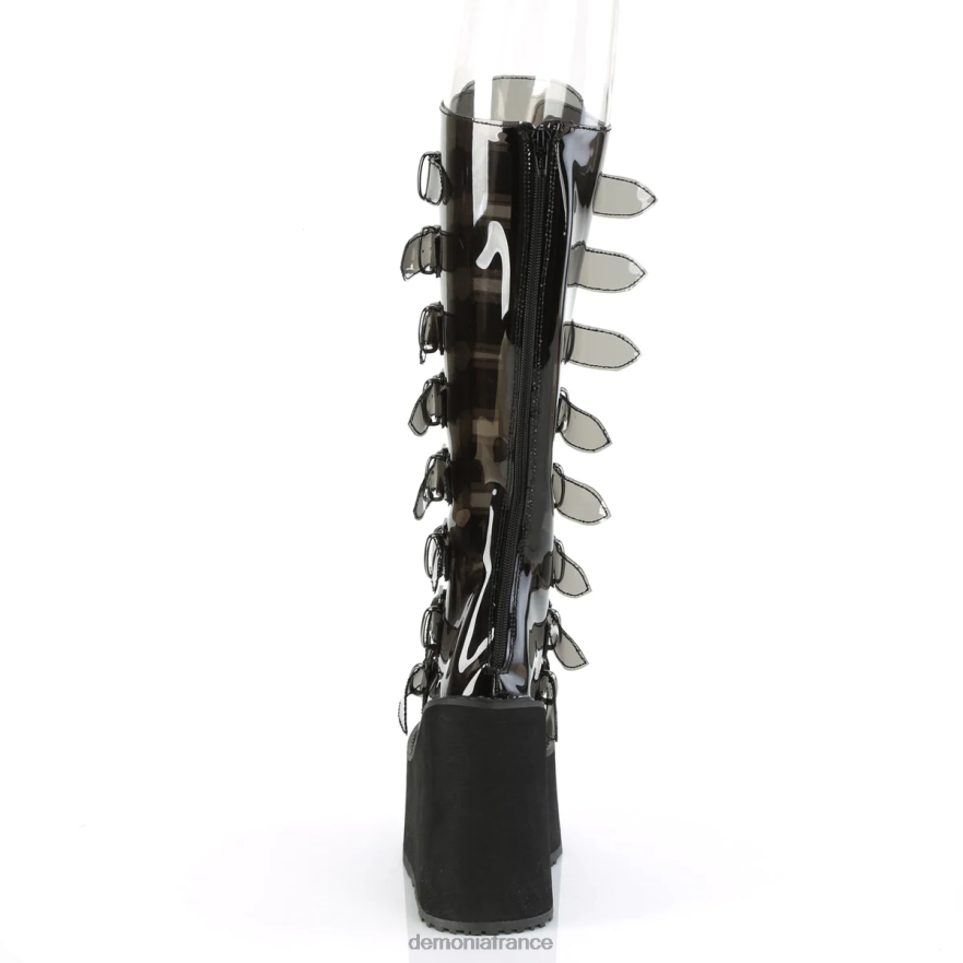 Botte haute à plateforme de 5 1/2 pouces avec 8 sangles à boucles, fermeture éclair en métal à l’arrière