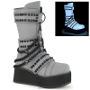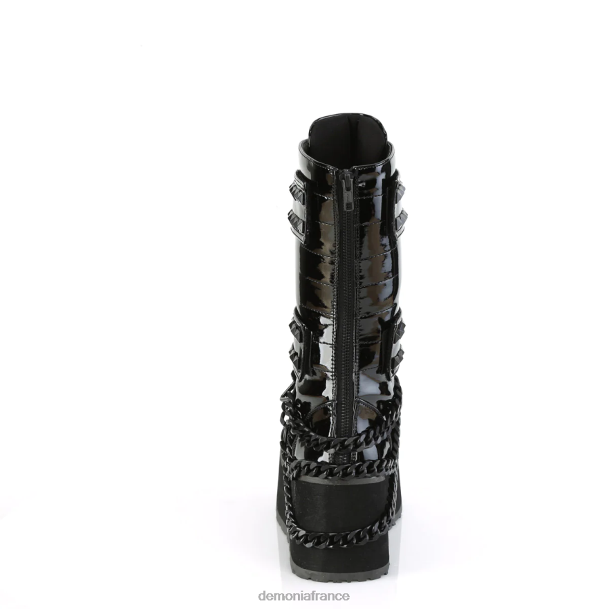 Botte mi-mollet à plateforme pyramidale de 3 1/4 pouces (83 mm) et triple sangle à crochets et boucles avec anneau en D surdimensionné sur la sangle supérieure avec chaîne en cascade à crochet pivotant et fermeture éclair en métal à l’arrière
