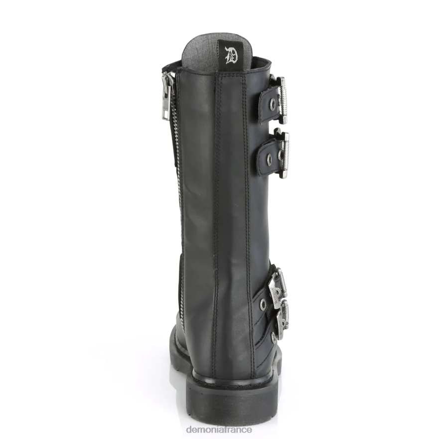 Botte de combat mi-mollet unisexe à 14 œillets et talon de 1 1/4 pouce (32 mm) avec panneaux à boucles avec plaque métallique au centre, fermeture à glissière intérieure