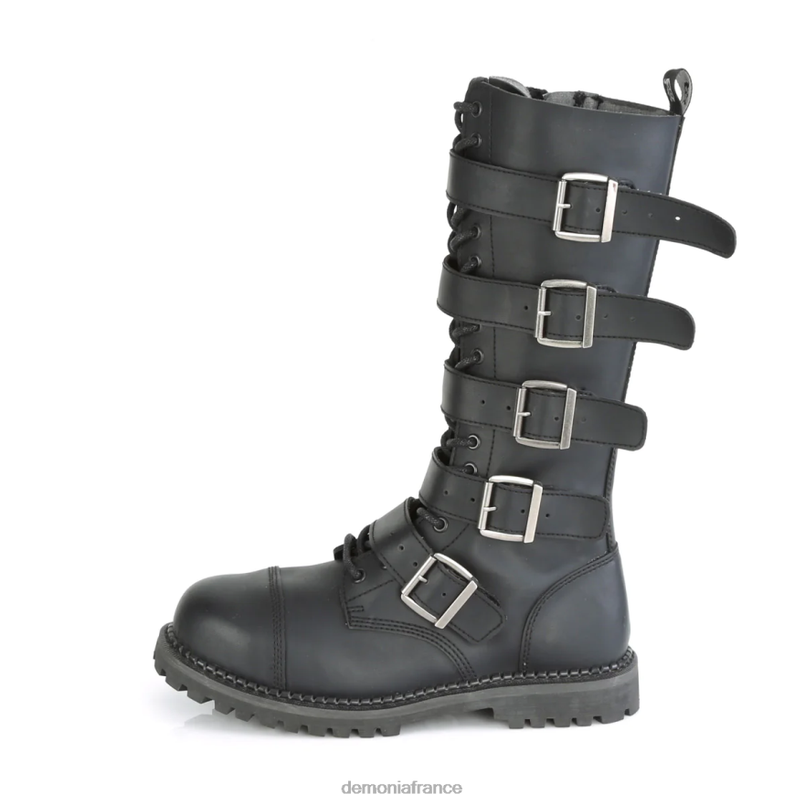 Botte au genou démoniaque unisexe à 18 œillets, bout en acier, à lacets, 5 boucles, semelle en caoutchouc, fermeture éclair intérieure sur toute la longueur