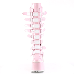 Botte hauteur genou à plateforme de 7 pouces (178 mm) avec détails de patch sur la plateforme et l’empeigne, fermeture zippée en métal à l’intérieur