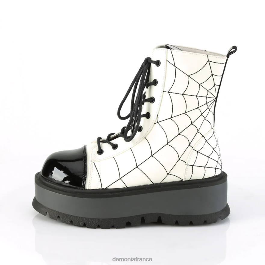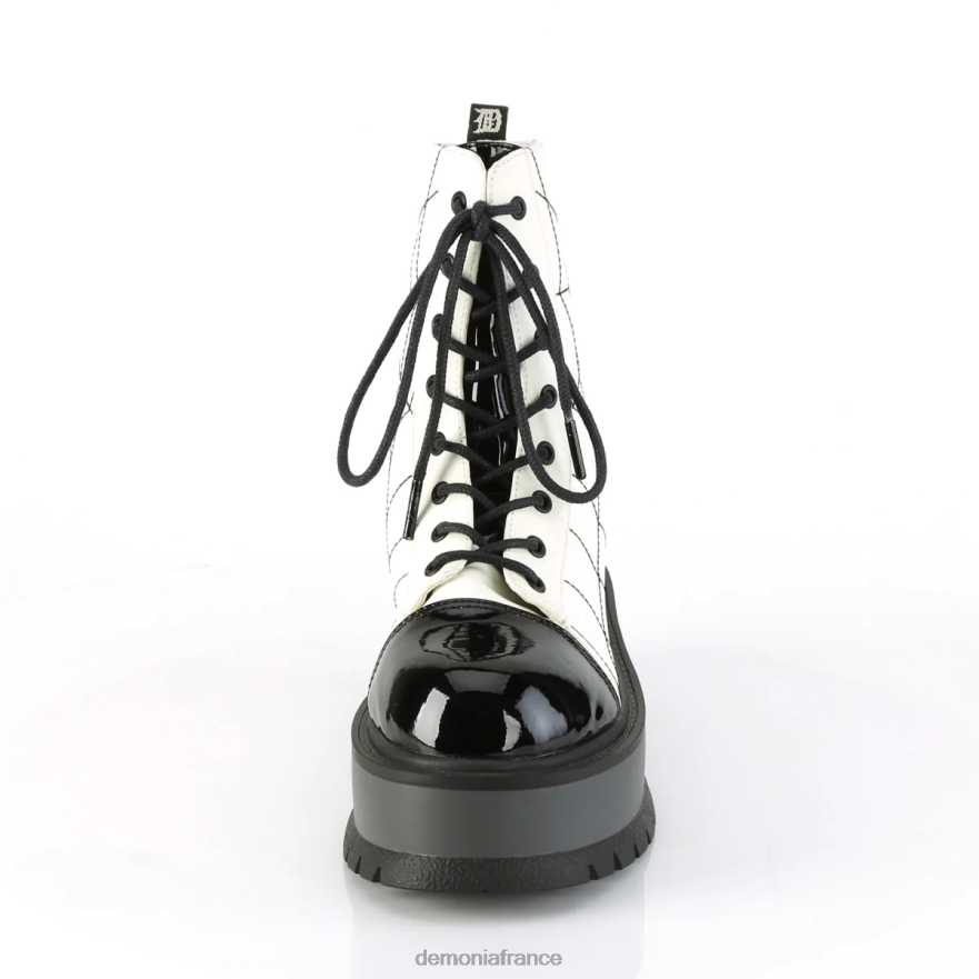 T0L2J1346 fainéant-88 cuir végétalien White Glow-verni noir Demonia