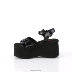 marche Améliorez votre style avec la sandale à plateforme Funn-10, un ajout d’inspiration gothique à n’importe quelle tenue. la plate-forme de 2 1/2 pouces vous offre le levage parfait, tandis que les étranges détails en toile d’araignée sur l’empeigne ajoutent une touche dramatique. le matériau verni holographique noir brillant reflète un spectre de couleurs, vous permettant de vous démarquer dans la foule. faites une déclaration avec la superbe boucle araignée argentée ; ces sandales sont votre billet pour une entrée inoubliable.